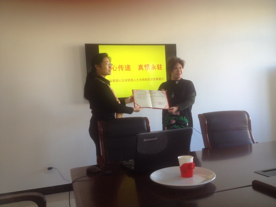 2014年11月14日上午10:00時(shí)秦皇島市如意山海拍賣(mài)有限公司、眾籌愛(ài)心企業(yè)聯(lián)盟及秦皇島市德善公益協(xié)會(huì)一行愛(ài)心人士抵達(dá)秦皇島新世紀(jì)高級(jí)中學(xué),將本次拍賣(mài)會(huì)的部分善款親手交到了貧困學(xué)子楊敬儒手中。本次活動(dòng)得到新世紀(jì)高中學(xué)校領(lǐng)導(dǎo)的高度評(píng)價(jià),隨行記者對(duì)此次活動(dòng)進(jìn)行了追蹤報(bào)道。秦皇島市如意山海拍賣(mài)有限公司總經(jīng)理張修宇表示希望楊敬儒同學(xué)能夠堅(jiān)強(qiáng)的度過(guò)暫時(shí)的難關(guān),讓愛(ài)心的陽(yáng)光照亮她年輕的生命,活出自己生命的精彩。楊敬儒表示非常感謝社會(huì)各界對(duì)自己的幫助,一定要考上理想的大學(xué),回報(bào)社會(huì)。