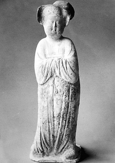 唐代彩繪陶俑是盛唐時代的產(chǎn)物,也是中國陶俑的藝術高峰。大致出現(xiàn)在唐中后期,產(chǎn)出地以陜西西安和河南洛陽為多。此尊唐代彩繪陶仕女俑,原物高36厘米,底座長19厘米、寬14厘米,F(xiàn)發(fā)髻殘缺處長2厘米、寬1厘米,左耳殘缺處長寬各1厘米,底座殘缺處長9厘米、寬7厘米,且全身破碎。曾經(jīng)黏接,但身首相離,渾身斑駁,接縫處錯位嚴重,搖擺不穩(wěn)。